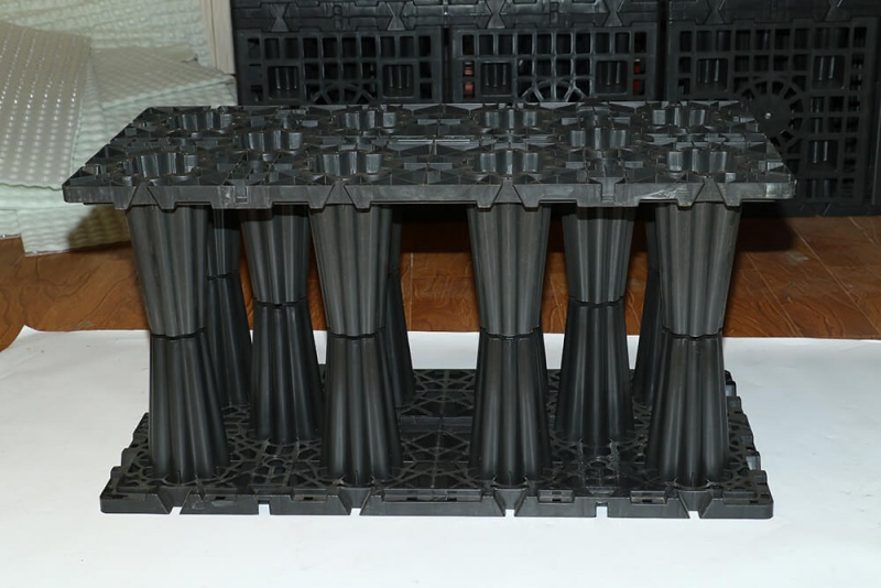 防排水保護(hù)板獨(dú)有的凹凸中空立筋結(jié)構(gòu),可以有效快速的導(dǎo)出地下防水層積水,地下滲出的水順著地下架空層排水板的空間將水引流至四周盲溝,再通過盲溝后引流至集水坑。從而大大的減少甚至消除了防水層的靜水壓,通過這種主動(dòng)導(dǎo)水的原理達(dá)到主動(dòng)防水的效果。有效的保護(hù)構(gòu)筑物和防水層,并且抵抗土壤中的各種酸堿和植物的根刺還有防潮降噪的功能。對(duì)土建施工周期及構(gòu)筑物的正常使用和壽命具有重要的作用。